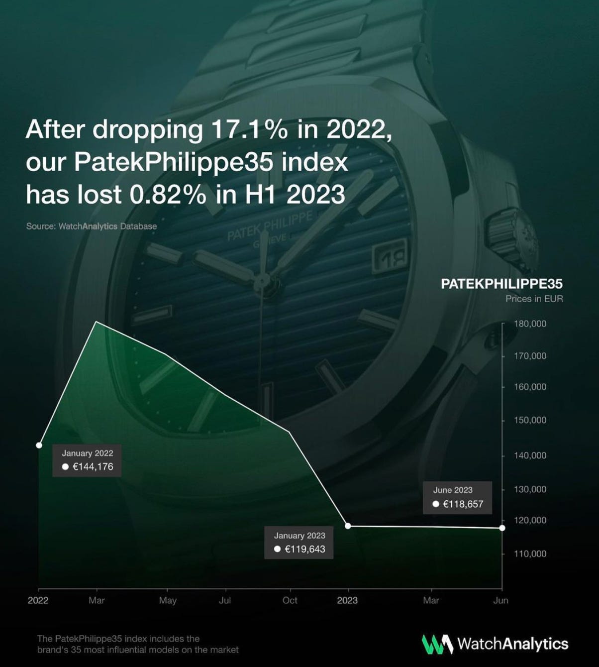 After losing 17.1% in 2022, our PatekPhilippe35 index lost only 0.82% in the first half of 2023.