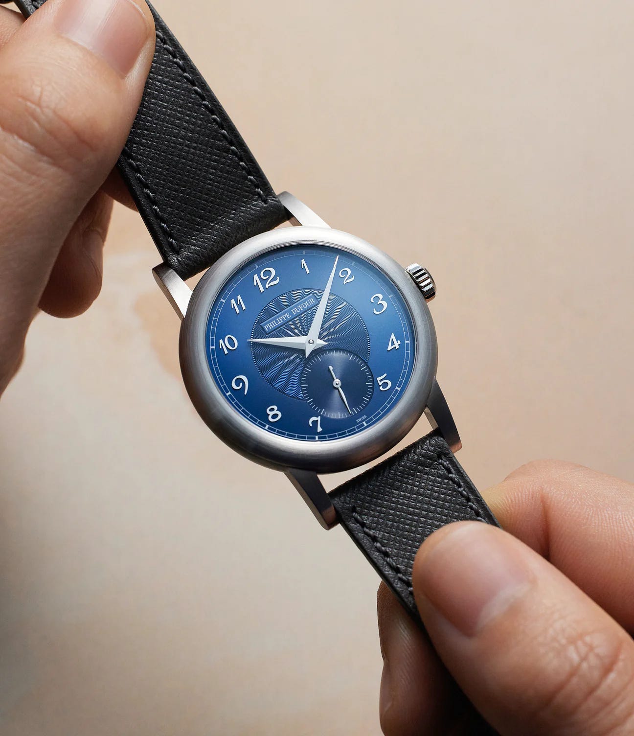 Last month another piece from the anniversary series appeared in A Collected Man, one with a blue dial and platinum case. Briefly the watch was sold with another million-dollar valuation: $1,300,000.